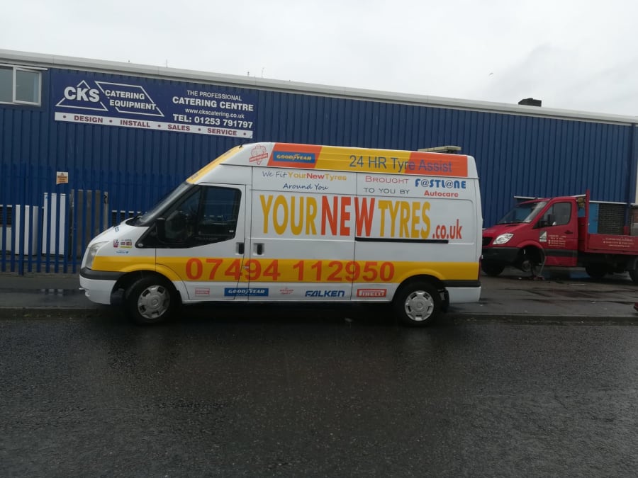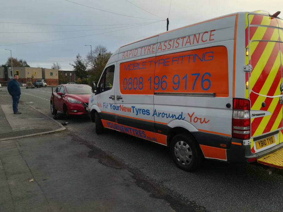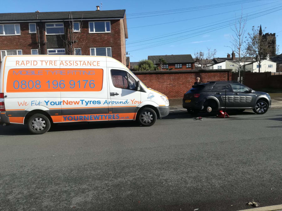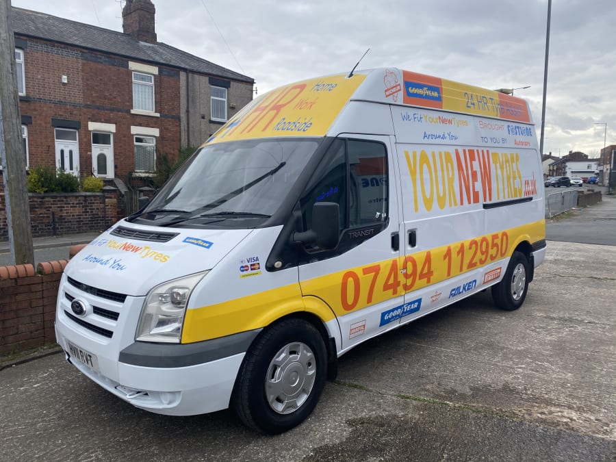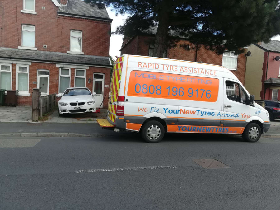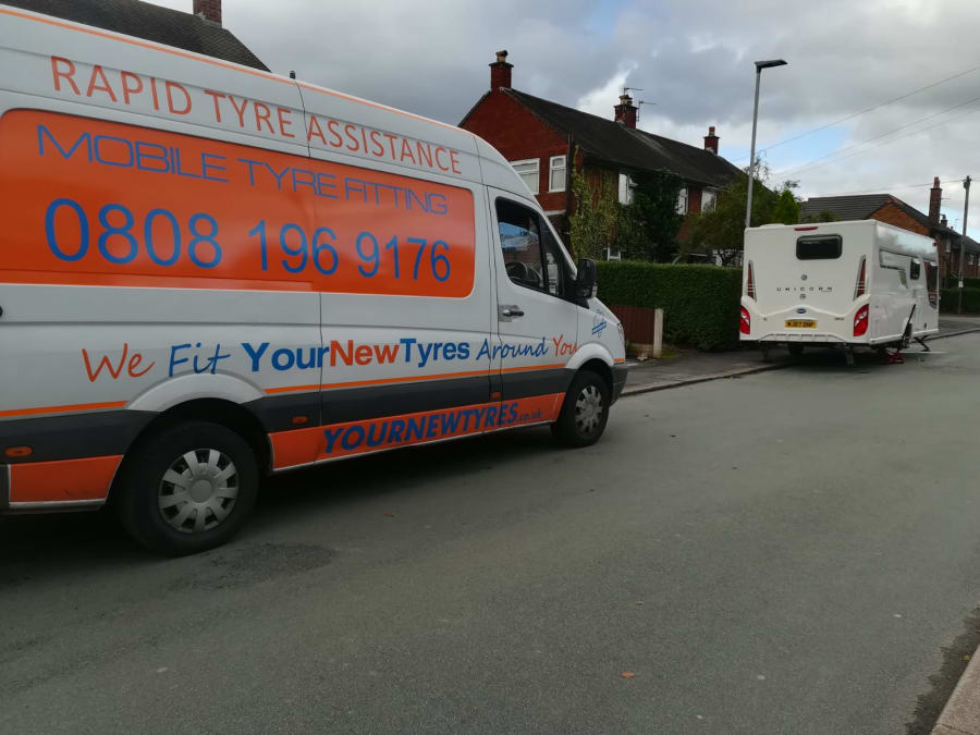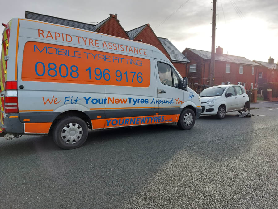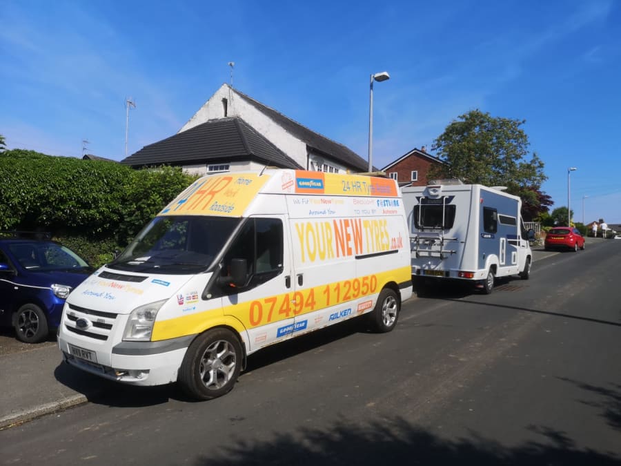 If you need a mobile tyre-fitting service in the North West that is available 24 hours a day 7 days a week call us today. We stock a wide range of car, van, caravan, motorhome, truck & bus as well as coach tyres. And with our emergency mobile tyre-fitting service with an average call out time of 32 minutes, we are just a phone call away 24 hours a day 7 days a week. We offer mobile tyre-fitting in Stockport, Trafford, Salford, Manchester, Wigan, Leigh, Liverpool, Huyton, Prescot, West Derby, St Helens, Warrington, Appleton, Cheshire, Chester, Northwich, Runcorn, Lymm, Crewe, Deeside. The Wirral as well as the whole of the North West and North Wales areas. Ensuring we keep you on the move 24 hours a day is our number one priority. We also offer a fleet report for all types of vehicles that you may use within your fleet and our range of trailer and caravan tyres are ready to be fitted the very same day. For your mobile tyre-fitting needs across the North West, we are ready to help you today!